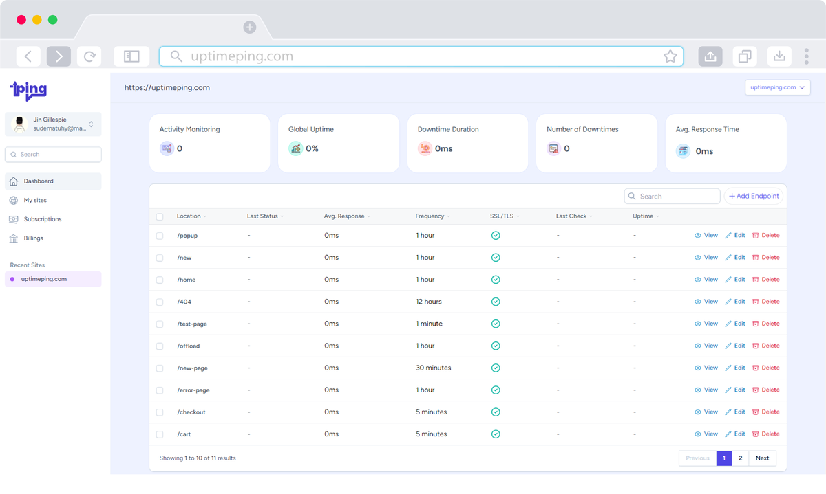 Your website's availability matters. With UptimePing, experience uninterrupted monitoring and instant downtime alerts, so you're always the first to know.