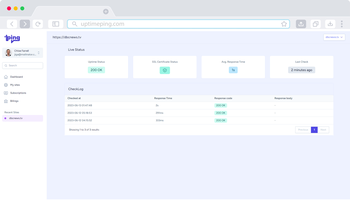 “The peace of mind UptimePing provides is unparalleled. Knowing that our site is being monitored consistently allows us to sleep better at night. And if anything goes wrong, we're the first to know. Kudos to UptimePing for their stellar service!”